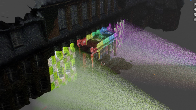 The first step was to get a rough idea of how to lay out the content. So I headed out to create a 3D scan of the school. That worked semi-well. Turns out 500 photos are bearly enough. The model had a lot of holes and looked more like swiss cheese rather than a proper model. After importing that model into Blender we created an orthographic render of the building.
